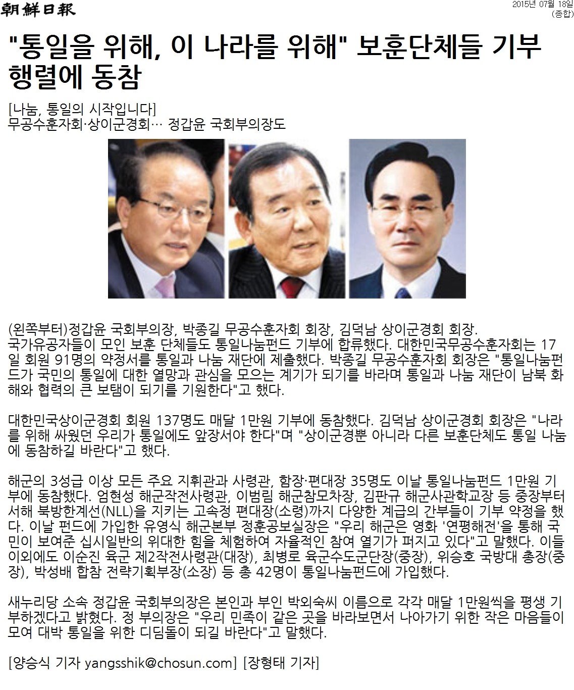 대한민국상이군경회 통일나눔펀드 기부 동참