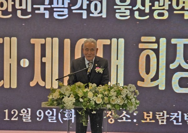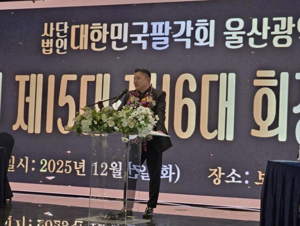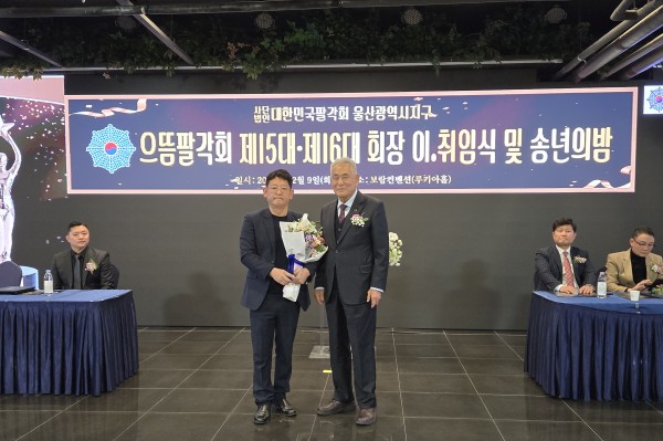 ♣ 으뜸팔각회 제15·16대 회장 이·취임식 ♣ 울산지부 나호원 지부장은 2025. 12. 9.(화) 18:30 남구 보람컨벤션 3층 루키아홀에서 열린 으뜸팔각회 제15·16대 회장 이·취임식 행사에 참석하였습니다. 이날 행사에서는 으뜸팔각회 15대 최창순 회장의 임기 만료로 인한 퇴임과 16대 홍현기 회장의 취임식이 동시에 진행되었으며, 지부에서는 물심양면으로 도움을 주시는 으뜸팔각회에 축하 화환과 함께 퇴임회장에게 감사패를 전달하였습니다. |