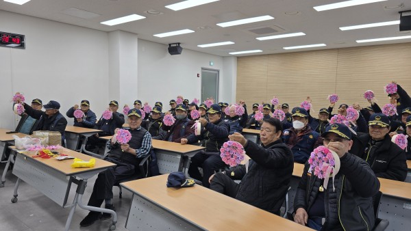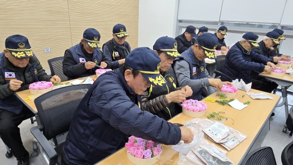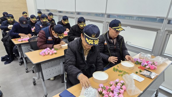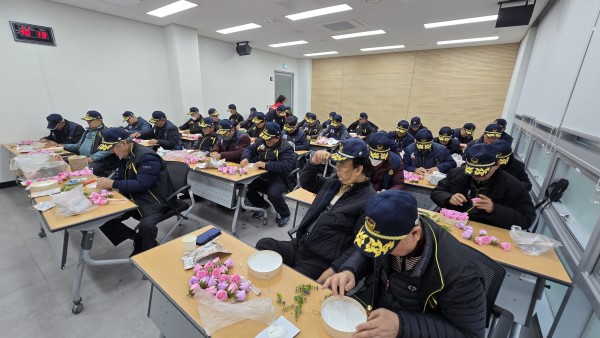 2025 찾아가는 건강문화프로그램 (당진시지회) - 일 시 : 2025. 12. 16(화) 10:00-11:00 - 장 소 : 당진시 보훈회관 - 인 원 : 40명 - 제 목 : 조화 도어벨 - 강 사 : 신용순(화목플라워) - 내 용 : 원형틀에 볼클레이를 깔고 조화 장미를 예쁘게 장식하고 미니종과 마끈으로 걸이를 만들어 완성 |