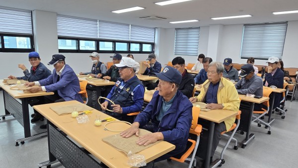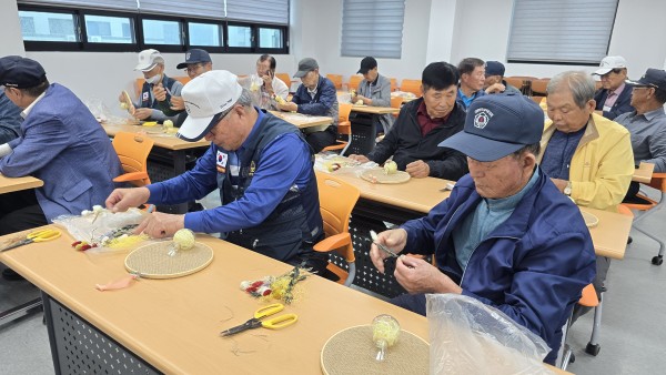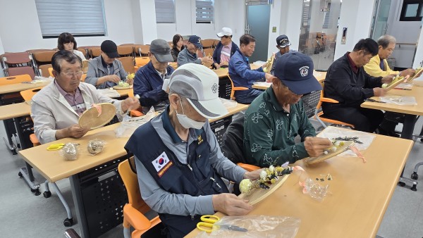 2025 찾아가는 건강문화프로그램 (태안군지회) - 일 시 : 2025. 10. 13(월) 10:30-11:30 - 장 소 : 태안군 보훈회관 - 인 원 : 20명 - 제 목 : 프리져보드 수틀장식 - 강 사 : 신용순(화목플라워) - 내 용 : 수틀에 마천을 팽팽하게 끼우고 화병을 철사로 고정후 프리져보드꽃으로 예쁘게 장식하여 완성 |