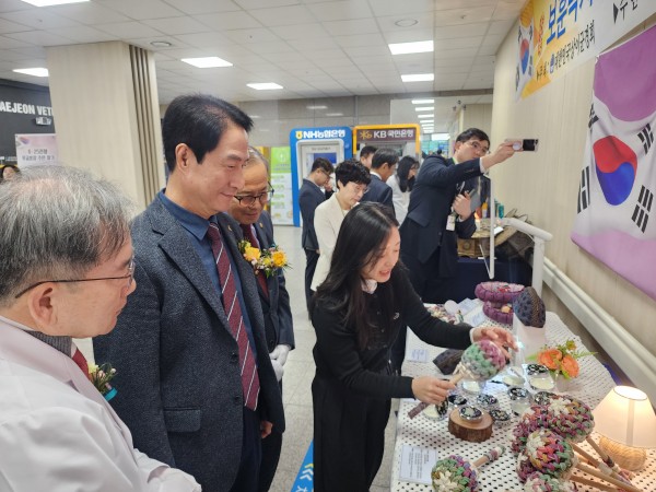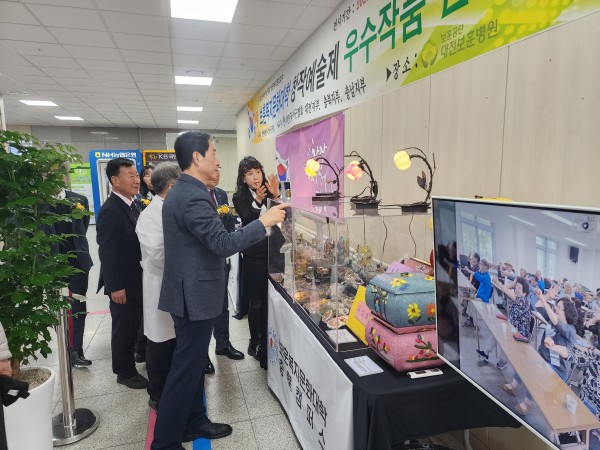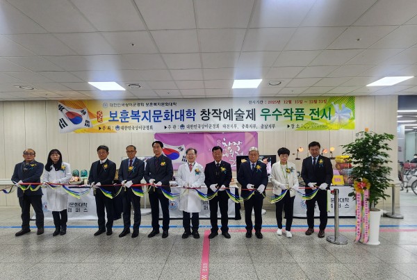■2025년 보훈복지문화대학 창작예술제 우수작품 전시회 ○ 일시 : 2025년 12월 15일(월) 11:00 ○ 장소 : 대전보훈병원 (1층) ○ 내용 : 지부장(김진환)은 2025년 보훈복지문화대학 창작예술제 우수작품 전시회를 대전보훈병원 1층 특별 전시관에서 개최하였습니다. 보훈복지문화대학 대전·충남·충북캠퍼스가 공동으로 주관하고, 병원을 찾는 입원 및 내방 환자와 보호자, 병원 직원 등 이용객들에게 문화예술을 통한 정서적 안정과 치유의 시간을 제공하고자 기획하였습니다. 전시에는 각 캠퍼스에서 출품된 작품 가운데 심사를 통해 선정된 회화, 공예, 캘리그래피 등 다양한 장르의 창작예술작품 200여 점의 우수 작품을 전시하고. 작품들은 보훈복지문화대학 학생들이 그동안 교육과정을 통해 쌓아온 예술적 역량과 삶의 이야기를 담아내며, 특히 병원이라는 공간의 특성을 고려해 따뜻한 색감과 희망의 메시지를 담은 작품 위주로 구성함으로써, 관람객들이 일상의 긴장과 스트레스를 완화하고, 마음의 안정을 찾을 수 있도록 하였습니다. 전시는 12월 15일부터 31일까지 진행되며, 대전보훈병원을 찾는 누구나 자유롭게 관람할 수 있으며. 이를 통해 보훈복지문화대학과 대한민국상이군경회의 활동을 널리 알리고, 보훈문화 확산과 지역사회 문화예술 활성화에도 기여할 것으로 기대합니다. 또 한 지부장(김진환)은 “이번 전시회는 보훈복지문화대학 수강생들의 열정과 노력의 결실을 공유하는 자리”라며 “병원을 찾는 분들께 작은 위로와 희망을 전하는 의미 있는 전시가 되길 바라며” 이어 “앞으로도 보훈가족의 문화·예술 활동을 적극 지원하고 지역사회와 함께하는 문화 나눔을 지속적으로 실천해 나가겠다”고 하였습니다. |