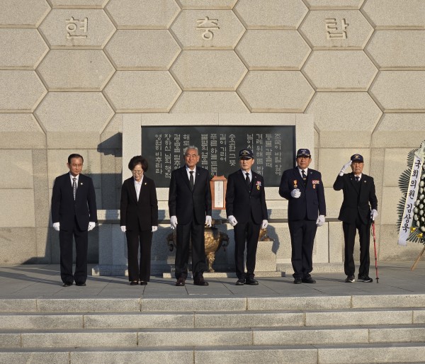 ♠ 11월 현충탑 정기참배 ♠ 울산지부 나호원 지부장 및 직원 일동은 2025. 11. 1.(토) 08:00 울산대공원 내 현충탑 광장에서 실시된 11월 현충탑 정기참배 행사에 참석하였습니다. 이날 행사에는 울산보훈지청장, 보훈단체장 및 회원 등 200여 명이 참석하여 참배를 통해 순국선열과 호국영령의 숭고한 나라사랑 정신을 되새겼습니다.