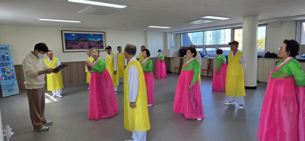 - 아름다운강산 노래에 맞춰 공연 연습(남,녀 구분하여 입장 및 음악맞추기)