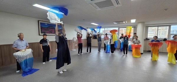 내 용 : - 박자에 맞춰 손바닥박수, 짝꿍과 함께 박자 맞춰 박수치기 - 박자에 맞춰 걷기(앉기, 서는 동작을 맞춰서 하기) - 아름다운강산 노래에 맞춰 공연 준비(남,녀 구분하여 입장 및 음악맞추기) 강 사 : 박재형 강사님 |