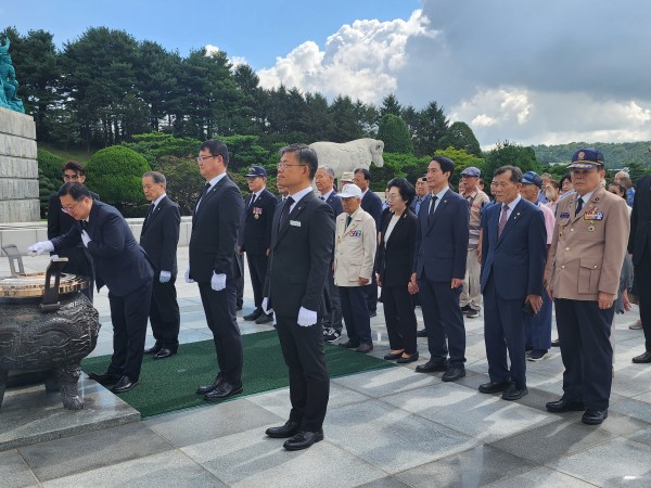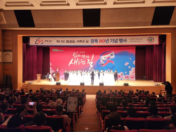 ■ 제 80주년 광복절 경축식 ○ 일시 : 2025년 8월 15일(금), 오전 10시 30분 ○ 장소 : 대전광역시청 3층 대강당 ○ 내용 : 지부장(김진환)은 제80주년 광복절 경축식에 참석하였습니다. 이 날 경축식에 앞서 지부장은 국립대전현충원을 찾아 순국선열과 호국영령을 추모하고, 애국지사와 독립운동가의 숭고한 뜻을 기렸습니다. 또 한 경축식에는 대전광역시장(이장우), 독립유공자와 유가족, 지역 보훈단체장, 기관(단체장), 시민등, 600여명이 참석하였습니다. 지부장은 순국선열들의 숭고한 애국정신을 기리고 광복을 경축하며, 우리 회원들의 희생과 봉사가 있어 오늘의 대한민국이 있다는 것에 감사함을 전하였습니다. |