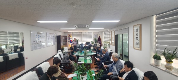 ■ 2025년 중추절(추석) 계기 지부 간담회 개최 ○ 일시 : 2025년 9월 26일(금) 11:00 ○ 장소 : 지부 사무실 ○ 내용 : 지부장(김진환)은 중추절(추석) 계기 지부 간담회를 개최 하였습니다. 이 날 간담회에서는 지부 활동 현황 설명과 앞으로의 계획 및 지부발전과 회원 복지 향상에 대하여 토의 하였습니다. 또 한 조직내 위협행위 금지 및 예방을 위한 대전지부 각 구 지회장, 지부직원, 지회 여직원을 대상으로 교육을 실시 하였습니다.