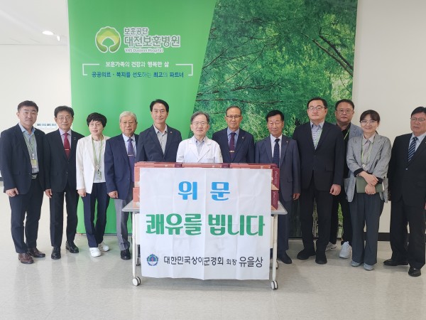 ■ 2025년 중추절(추석) 대전보훈병원 위문행사 ○ 일시 : 2025년 10월 2일(목) 11:00 ○ 장소 : 대전보훈병원 ○ 내용 : 지부장(김진환)은 회장님을 대리하여 대전보훈병원 입원 환자를 위문하고 위문품을 전달하였습니다. 행사전 지부장은 대전보훈병원장(이정상)과의 면담에서 추석 연휴기간 입원환자의 불편함이 없도록 당부하고, 보훈병원의 개선사항에 대하여 현재도 잘 진행이 되고 있으나 더나은 의료복지를 위해 최선을 다해 해줄것을 토의 하였습니다.
