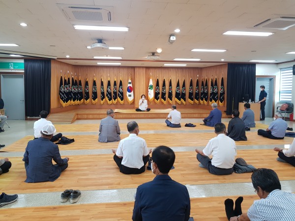 ○ 일시 : 2020년 7월 15일 수요일 11:30 ~ 12:30 ○ 장소 : 복지회관5층대강당 ○ 프로그램명 : 생활체육프로그램 국학기공(3교시) ○ 내용 : 손동숙 강사와 함께 기를 이용한 신체적 단련 프로그램인 국학 기공 수업을 실시하였다 ○ 간식 및 도시락 중식 제공 |