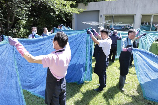 7월1일 수요일은 09:00 복지회관에서 출발하여 현장학습을 다녀왔다. 코로나19로 인해 위축된 생활을 하던 중 조심스럽게 방역수칙(발열체크, 마스크 착용, 손소독 등)을 준수하면서 체험학습을 진행하였다. 모처럼의 나들이에 참여자들은 즐거운 모습이었다. 마스크를 끼고 체험활동을 하면서도 힘든 기색도 없이 웃고있었다. 여름에 안성마춤인 인견이불 쪽염체험을 2인1조가 되어 염물에 담그고 말리고를 반복하면서 완성하였다. |