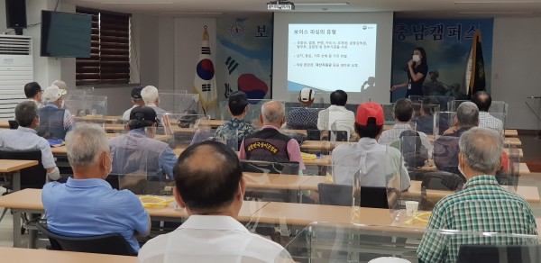 보훈복지문화대학 충남캠퍼스 7월 7일(화) 1교시 : 신나는 마술세계 - 일 시 : 2020. 7. 7(화) 09:30-10:10 - 강 사 : 윤 은 주(매직파티 이벤트) - 내 용 : 흥겨운 음악에 맞춰 간단한 레크레이션을 하고 밧줄을 반듯하게 세우는 마술을 배움 2교시 : 법률 강좌 - 일 시 : 2020. 7. 7 (화) 10:20-11:00 - 강 사 : 김 민 정 변호사(천안시 법률홈닥터) - 내 용 : 일상 생활에서 겪을수 있는 법률문제인 신종 보이스피싱 피해 사례와 접근방법 등에 대해 알아보고 그에 대한 예방법과 대처방법에 대해 질의응답 시간을 가짐 3교시 : 신바람 노래교실 - 일 시 : 2020. 7. 7 (화) 11:10-11:50 - 강 사 : 장 용 옥 - 내 용 : 최신 트롯트가요와 흘러간 옛노래를 배우고 섹소폰 연주자를 초청하여 따라 섹소폰 선율에 맞춰 따라부르며 즐거운 시간을 보냄 |