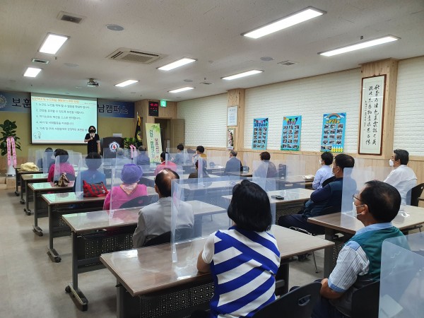 ※ 입구에서 발열체크 및 손소독, 마스크 착용 확인하였습니다. 1교시에는 전남서부노인보호전문기관 정해원 강사님의 노인 인권과 학대예방 교육을 진행하였습니다. 인권의 중요성과 다양한 학대의 유형, 학대의 발생 또는 발견 시 대처방법 등에 대해 알 수 있는 유익한 시간이었습니다. 2교시에는 김해나 강사님의 노래강좌를 진행하였습니다. 회원분들이 알고 계시는 다양한 노래를 함께 부르며 즐기고, "정 좀 주소"라는 새로운 노래를 배우는 즐거운 시간이었습니다. |