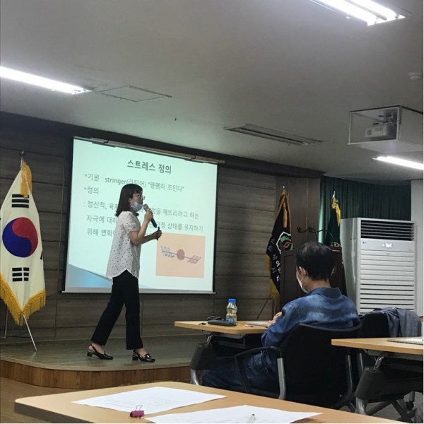 2020 보훈복지문화대학 대전캠퍼스 * 입구에서 마스크착용 필수, 발열체크 후 입실할 수 있도록 하였습니다. 1교시 - 강의명 :심리치료 - 강사명 : 정선영(보훈청) - 장소 : 복지회관 5층 강당 - 강의내용 : 스트레스에 대한 강의