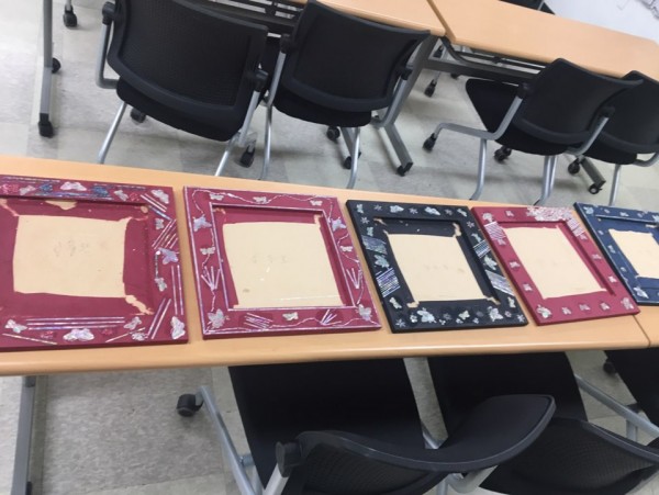 - 내 용 : 한지작업을 한 거울틀에 여러 모양의 자개를 붙여서 특별한 거울을 만듦
