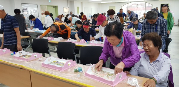 보훈복지문화대학 충남캠퍼스 10월 8일(화) 공예 교실( 냅킨아트 쟁반 ) - 일 시 : 2019. 10. 8(화) 10:00-12:00 - 강 사 : 임 수 민 , 김 혜 란 (임수민 도자기) - 내 용 : 쟁반모양의 나무틀에 아크릴 물감을 칠하고 여러 모양의 냅킨을 풀을 이용해 예쁘게 바르고 마감칠을 하여 나만의 쟁반을 만듦 |