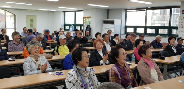보훈복지문화대학 충남캠퍼스 10월 15일(화) 1교시 : 신나는 마술세계 - 일 시 : 2019. 10. 15(화) 10:00-11:00 - 강 사 : 윤 은 주, 양 호 근 - 내 용 : 흥겨운 음악에 맞춰 간단한 레크레이션을 하고 손안에서 작은 보자기가 없어지는 마술을 배움 2교시 : 졸업사진 촬영 - 일 시 : 2019. 10. 15 (화) 11:00-12:00 - 촬영업체 : 브라우니 스튜디오 - 내 용 : 2019년 졸업을 준비하며 개인 학사모사진과 장수사진, 단체사진을 촬영함. |