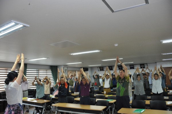 ⊙ 6월 14일(화) 대전캠퍼스 수업~ * 1교시 (10:00~10:50) - 학과명 : 구구팔팔 - 강의명 : 맷돌체조 - 강사명 : 이순임(국민건강보험공단 소속) * 간식(바나나) 및 출석체크 * 2교시(11:00~11:50) - 학과명 : 전문교양 - 강의명 : 꽃바구니 만들기 - 강사명 : 윤성류(원예치료사)