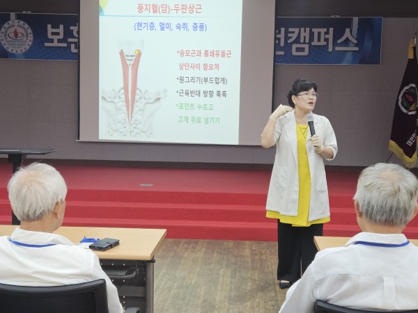 【보훈복지문화대학 인천캠퍼스는 학생 82명 중 분/반(36 / 46명씩) 수업을 실시합니다.】 ◆ 월요반 : 2반(미추홀구)/3반(연수구)/ 6반(남동구) ◆ 1교시 : 바디 통증관리 / 김순천 강사(10:00~11:00) - 우리 몸의 불편함과 통증을 느끼는 곳에 흐름을 부드럽게 하여 건강 회복 ◆ 2교시 : 국악/ 양민순 강사(11:10~12:30) - 판소리 배우기(아니리 / 상주함창 / 진도아리랑) -------------------------------------------------------------------------------------------------------------------- ◆ 난타 동아리 : 변연미 강사(13:00 ~ 14:30) - 난타 기본장단 익히기 / 찔레꽃, 멋진인생 안무익히기 - 인원: 10명 ◆ 컴퓨터 동아리 : 김혜영 강사(13:00 ~ 14:30) - 컴퓨터 기초 & 스마트폰 다양한 사용방법 알기 - 인원: 9명 |