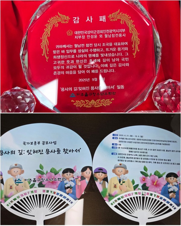 - 미추홀구청소년수련관으로부터 지부장 안성윤 외 월남참전용사들에게 감사패 전달