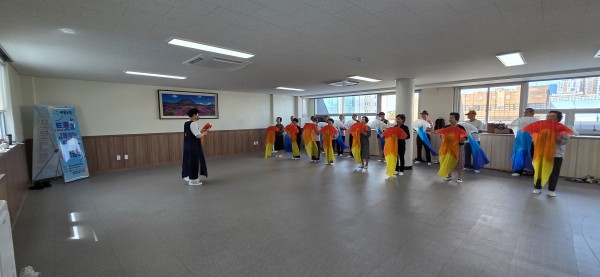 내 용 : - 박자에 맞춰 손바닥박수, 짝꿍과 함께 박자 맞춰 박수치기 - 박자에 맞춰 걷기(앉기, 서는 동작을 맞춰서 하기) - 아름다운강산 노래에 맞춰 공연 연습(남,녀 구분하여 입장 및 음악맞추기) 강 사 : 박재형 강사님 |