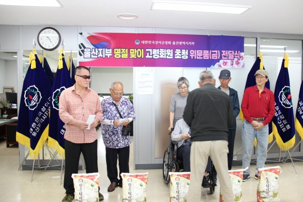 ■ 2025년 울산지부 고령회원 및 차상위계층 회원 추석맞이 위문품(금) 전달식 ■ * 일 시 : 2025. 9. 29.(월) 10:00 * 장 소 : 울산지부 사무실 * 참석자 : 13명 (지부장 및 지부직원, 고령회원 및 차상위계층 회원) * 내 용 : 추석을 맞이하여 고령회원 및 차상위계층 회원분들께 위문금과 위문품(백미 10kg) 전달식을 가지고 풍성한 명절이 되시길 기원함. |