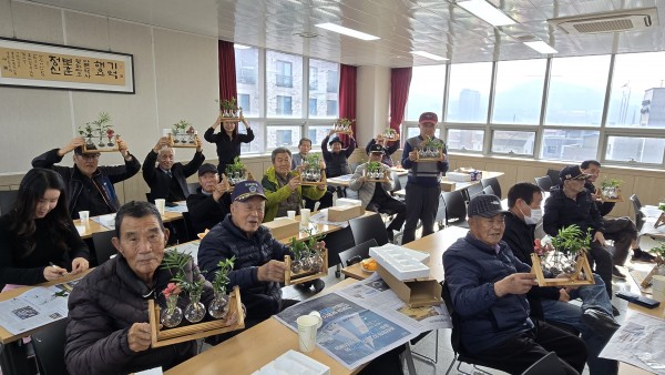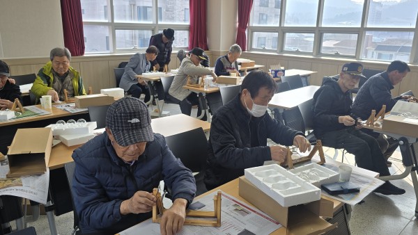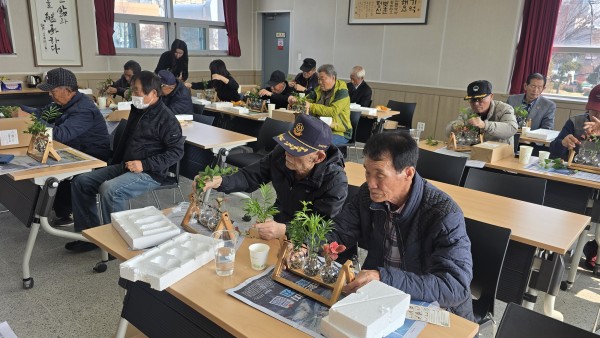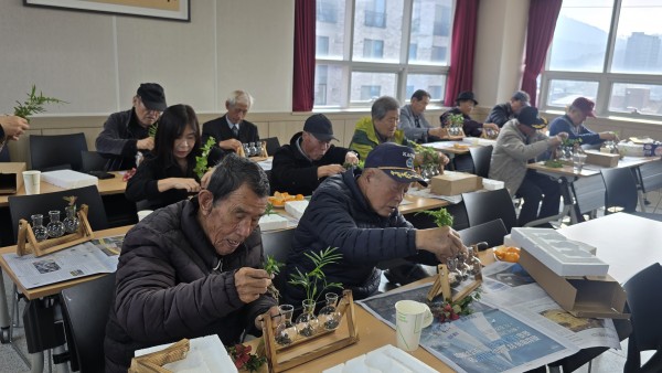 2025 찾아가는 건강문화프로그램 (청양군지회) - 일 시 : 2025. 11. 24(월) 10:30-11:30 - 장 소 : 청양군 보훈회관 - 인 원 : 23명 - 제 목 : 스탠드 수경재배 - 강 사 : 신용순(화목플라워) - 내 용 : 원목 스탠드의 미니꽃병에 맥반석을 넣고 수경식물을 꽂아 예쁘게 장식하여 완성 |