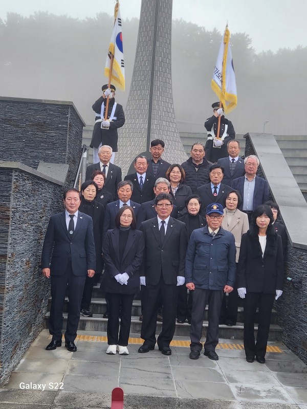 제주특별자치도 보훈단체협의회 회장이신 배문화 지부장을 비롯한 제주도 보훈단체장과 직원 호국원 참배