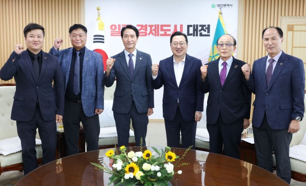 ■대전광역시장(이장우) 면담 ○ 일시 : 2025년 9월 11일(목) 10:00 ○ 장소 : 대전광역시장 접견실 ○ 내용 : 지부장(김진환)은 대전광역시장(이장우)과의 면담을 갖고, 우리지부 회원들을 위한 대전광역시의 정책을 살피면서 국가유공자의 긍지와 회원들의 복지를 위해 의견을 나누었습니다. 또 한 이날 참석은 우리지부 사무국장, 총무부장, 복지부장, 지도부장, 보훈정책추진단 팀장 및 주무관이 참석하였습니다. |