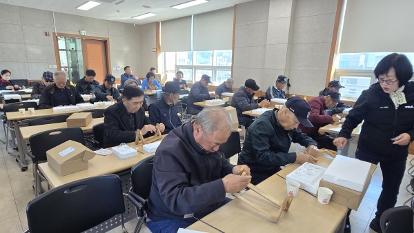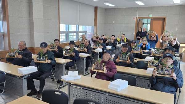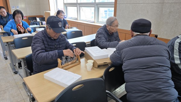 2025 찾아가는 건강문화프로그램 (아산시지회) - 일 시 : 2025. 10. 29(수) 10:30-11:30 - 장 소 : 아산시 보훈회관 - 인 원 : 26명 - 제 목 : 수경식물 테라리움 - 강 사 : 신용순(화목플라워) - 내 용 : 원목 선반의 미니꽃병에 맥반석을 넣고 수경식물을 꽂아 예쁘게 장식하여 완성 |