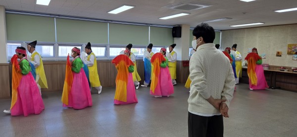 - 아름다운강산 노래에 맞춰 공연 연습(남,녀 구분하여 입장 및 음악맞추기)