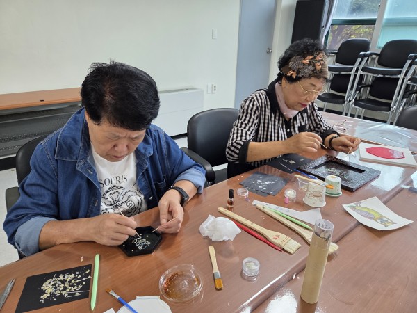 ⊙ 주제 : 한지액자 뼈대에 밑그림그리고, 채색후, 나전칠기를 이용하여 장식하기