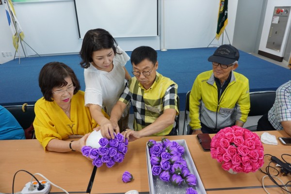 <?xml:namespace prefix = "o" ns = "urn:schemas-microsoft-com:office:office" /> 【동아리활동】 ○ 프로그램 : 공예 ○ 일 시 : 2019년 9월 17일(화) 10:00~11:30 ○ 강 사 명 : 김진영(풀잎문화센터장) ○ 내 용 : 비누꽃볼 만들기