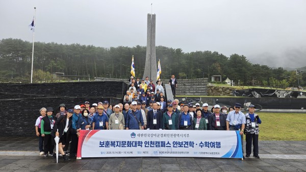 인천캠퍼스학장(안성윤)은 2025. 10. 14일 ~ 16일(2박 3일간) 학생(70명), 인솔자 8명 총 78명과 제주 안보 견학.수학여행 행사를 진행하였다. 학생들은 고령에도 불구하고 학창시절로 돌아가 수학여행을 온 것처럼 배움의 즐거움과 평소 경험하지 못했던 체험으로 친구이자 전우들과 잊지못할 멋진 인생샷을 남기고, "소중한 추억을 가슴에 안고 돌아 올 수 있어 기쁘다며" 행복감을 감추지 못했다.