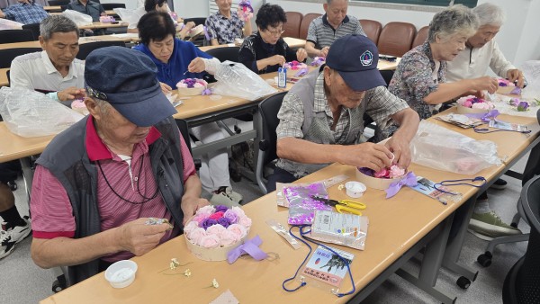 2교시 원예 교실( 비누꽃 도어벨 ) - 일 시 : 2025. 9. 23.(화) 11:00-12:00 - 강 사 : 신 용 순(화목플라워) - 내 용 : 원형 나무틀에 미니종을 아랫쪽에 장식하고 볼클레이를 바닥에 깔고 비누꽃을 풀에 뭍혀 이쁘게 배치해 꽂아 완성 ▣ 동아리 수업(북&장구 퓨전난타) - 일 시 : 2025. 9. 23(화) 12:30-14:30 - 강 사 : 이 은 경 - 내 용 : 장구와 전통북을 이용한 퓨전 난타 |