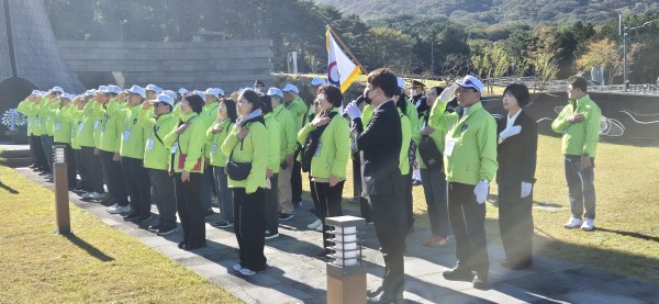 * 일 시 : 2025년 11월3일(월)~5일(수) * 장 소 : 국립제주호국원 일원 * 참 석 : 성영학 부산지부장및 지부임직원 중앙대의원, 지회장, 모범회원등 64명 부산지부는 부산지부장및 지부임직원 중앙대의원, 지회장, 모범회원등 64명이 제주지역 전적지를 순례함으로서 호국선열들의 희생정신을 기리고 회원 상호간의 단합과 안보의식을 고취하였습니다. |