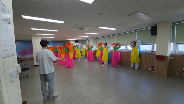 - 아름다운강산 노래에 맞춰 공연 연습(남,녀 구분하여 입장 및 음악맞추기)