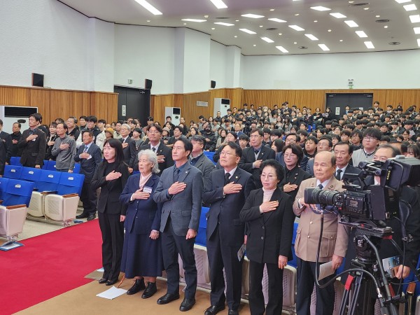 ■ 제71주년 독도대첩 기념식 ○ 일시 : 2025년11월 21일(금) 11:00 ○ 장소 : 국립대전현충원 현충관 ○ 내용 : 지부장(김진환)은 제71주년 독도대첩 기념식에 참석하였습니다. 이날 기념식에는 국가보훈부차관(강윤진), 대전지역 각기관장, 대전지역 보훈단체장, 시민등이 참석하여 1954년 11월21일 독도의용수비대가 독도 침략을 감행한 일본 무장 순시함을 소총과 가늠자 없는 박격포 등 열악한 무기로 집중 공격하여 순시함(헤쿠라호)을 명중시켜 퇴각시키고 큰 승리를 거둔 날 입니다. |