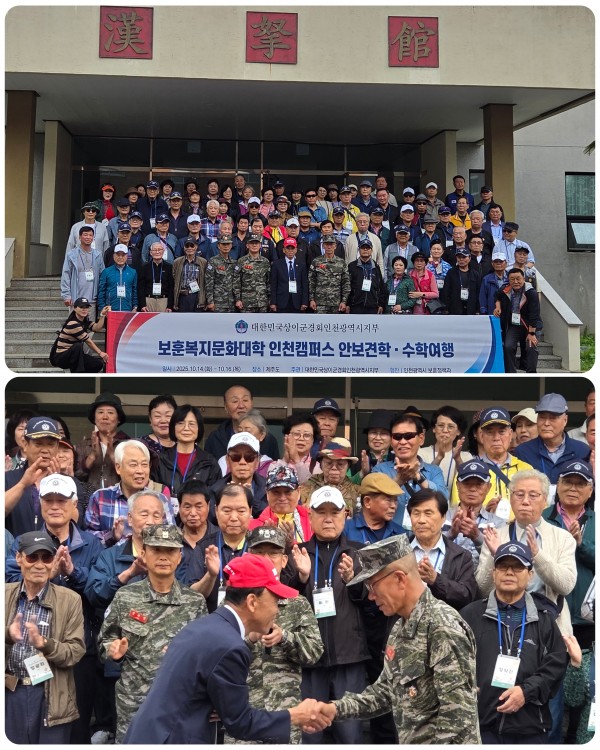 인천캠퍼스학장(안성윤)은 2025. 10. 14일 ~ 16일(2박 3일간) 학생(70명), 인솔자 8명 총 78명과 제주 안보 견학.수학여행 행사를 진행하였다. 학생들은 고령에도 불구하고 학창시절로 돌아가 수학여행을 온 것처럼 배움의 즐거움과 평소 경험하지 못했던 체험으로 친구이자 전우들과 잊지못할 멋진 인생샷을 남기고, "소중한 추억을 가슴에 안고 돌아 올 수 있어 기쁘다며" 행복감을 감추지 못했다.